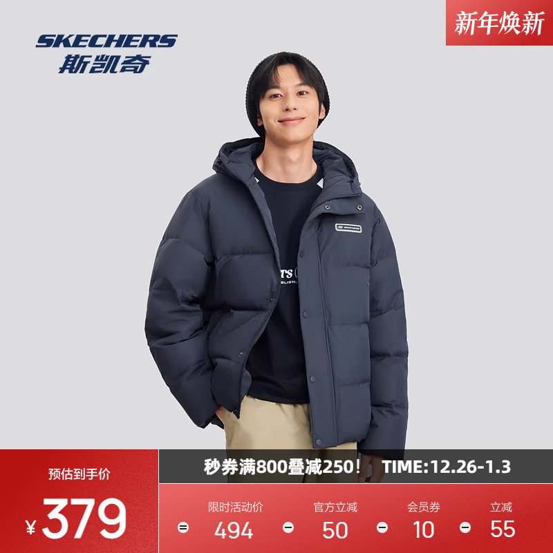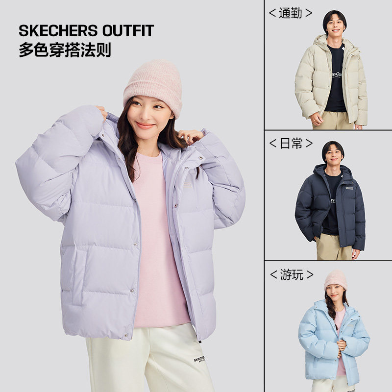 斯凯奇面包服羽绒服冬季 潮流保暖舒适运动外套 复古撞色男女情侣款