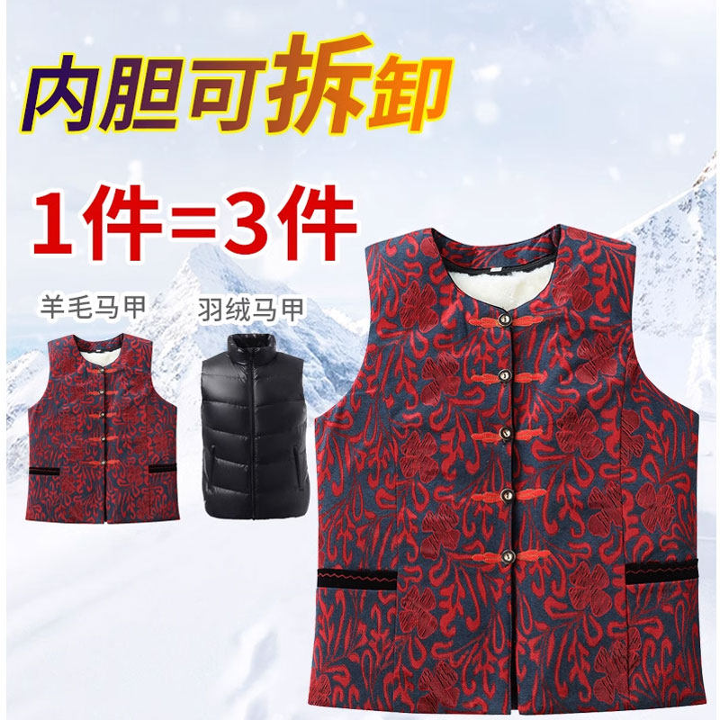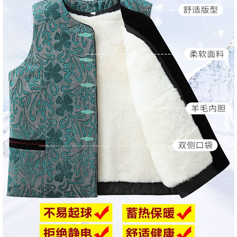 冬季 保暖马夹针织背心加厚棉坎肩 中老年羊毛马甲男皮毛一体妈妈装