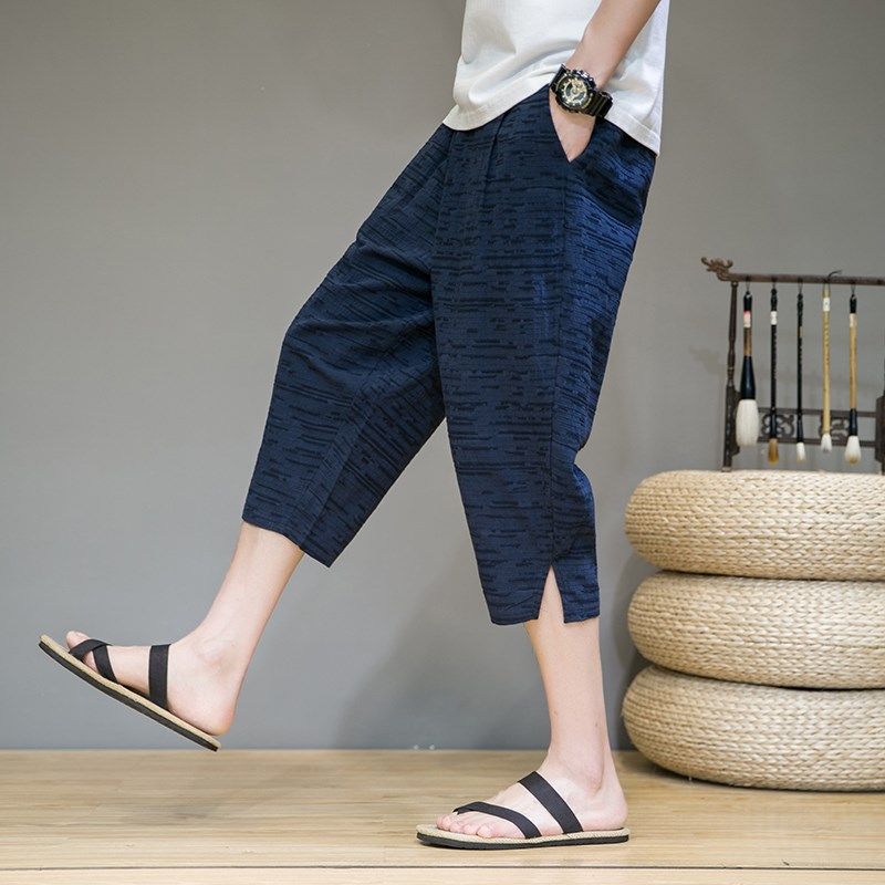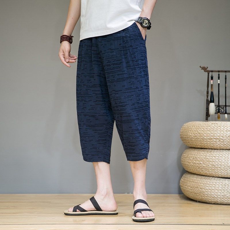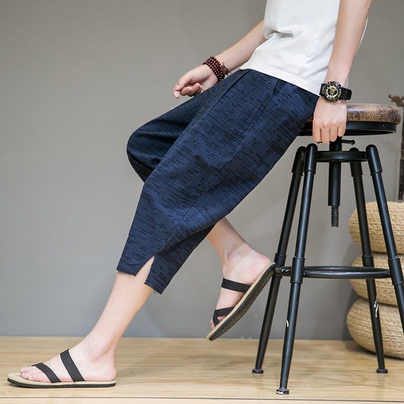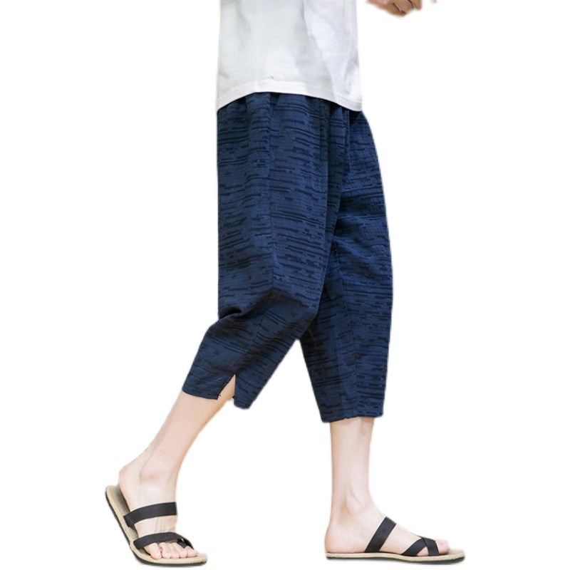 男士 七分裤 宽松直筒棉麻运动裤 裤 亚麻休闲短裤 薄款 沙滩裤 子男夏季