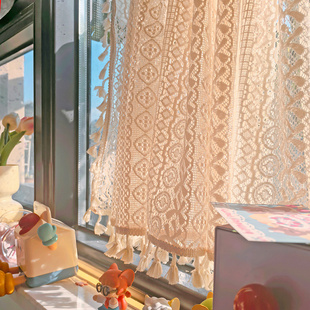 北欧风镂空流苏花边短帘遮挡帘民宿小院装 半帘卧室遮光 饰窗帘短款
