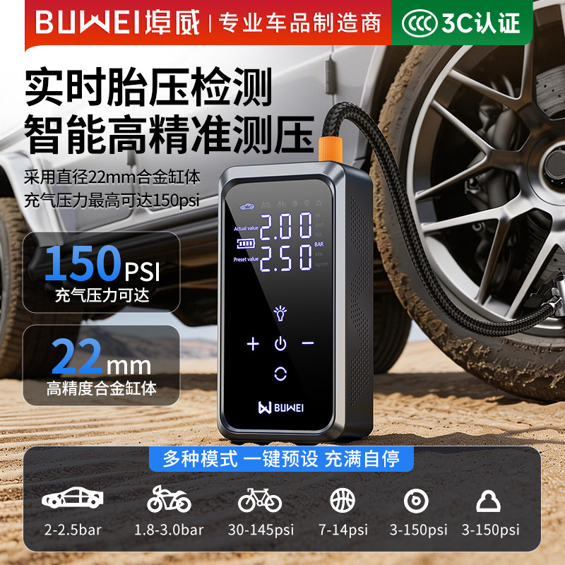 埠威BUWEI汽车紧应急启动电源充气一体机12V电瓶搭电宝车载打气泵