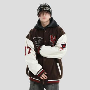 阿于呆秋冬日系假两件水洗连帽牛仔外套男宽松休闲情侣工装 夹克女