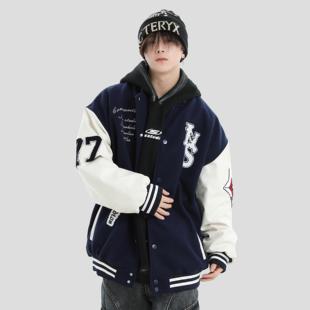 马登工装 复古尼龙教练夹克cityboy撞色拉链翻领街头外套男秋 美式