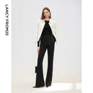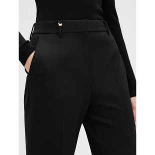女春季 裤 职业通勤黑色西装 朗姿25设计感气质微喇高腰西裤