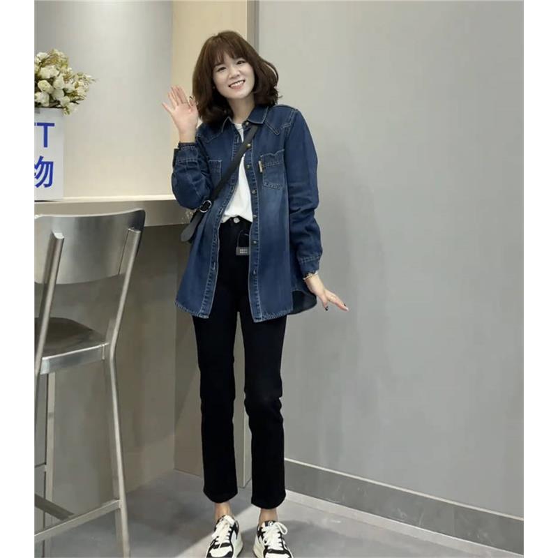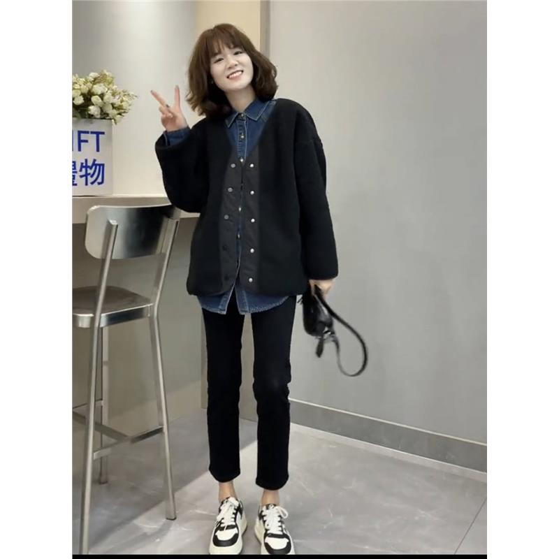 宽松叠穿上衣休闲开衫 正品 新款 外套女2025秋冬装 衬衣 加绒牛仔衬衫