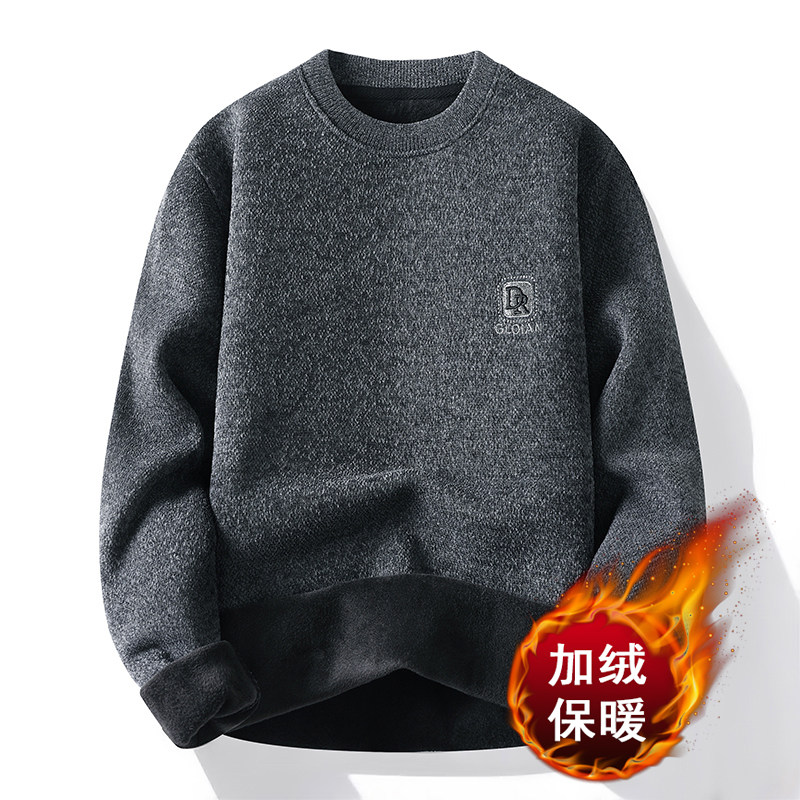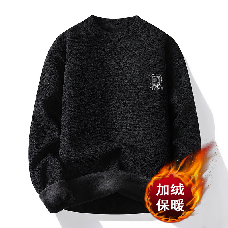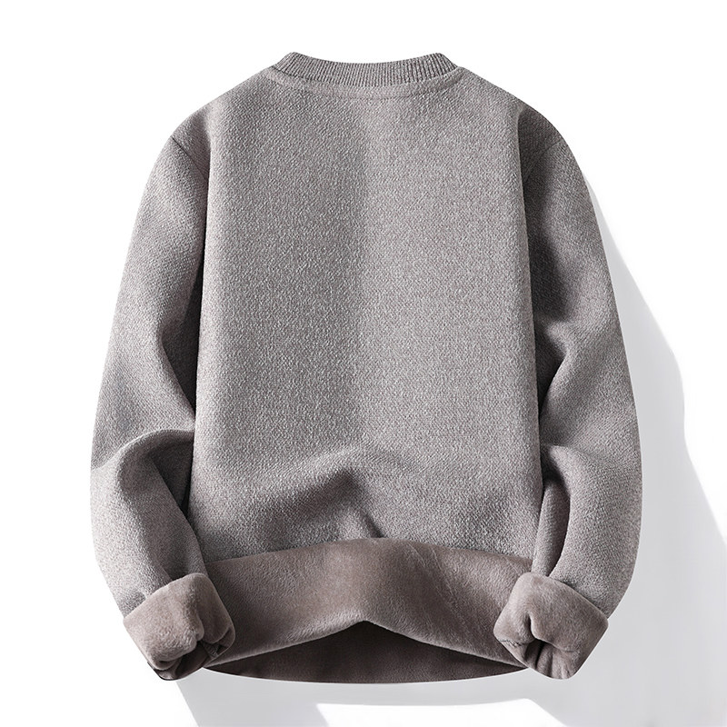 休闲宽松加绒内搭打底衫 圆领毛衣男冬季 加厚保暖针织卫衣男秋冬款