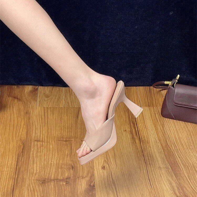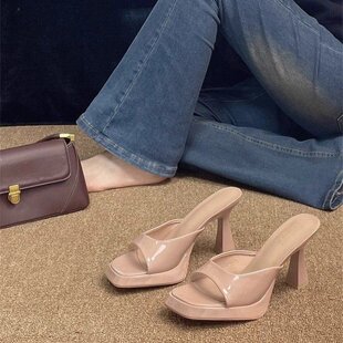 设计感方头露趾凉鞋 细跟凉拖鞋 外穿 女2025夏新款 防水台裸色高跟鞋