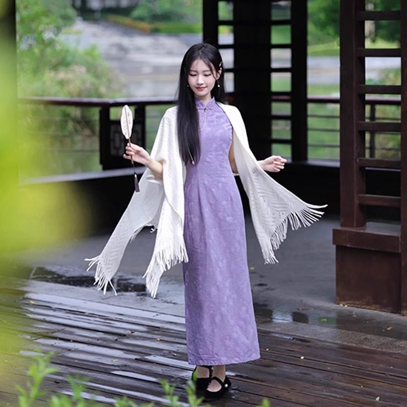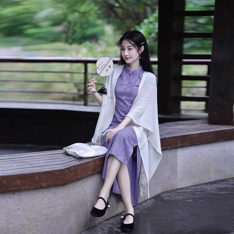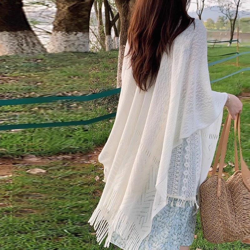 旗袍披肩女外搭2026新款 白色流苏披风高级感小坎肩 搭配裙子春夏季