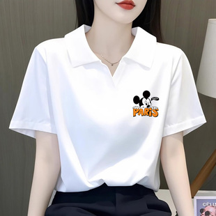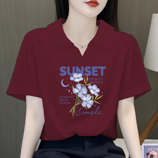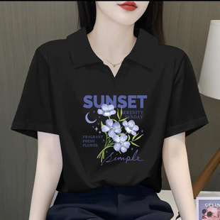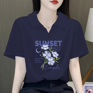上衣宽松显瘦文艺洋气减龄外穿polo衫 新款 t恤女夏季 纯棉翻领短袖