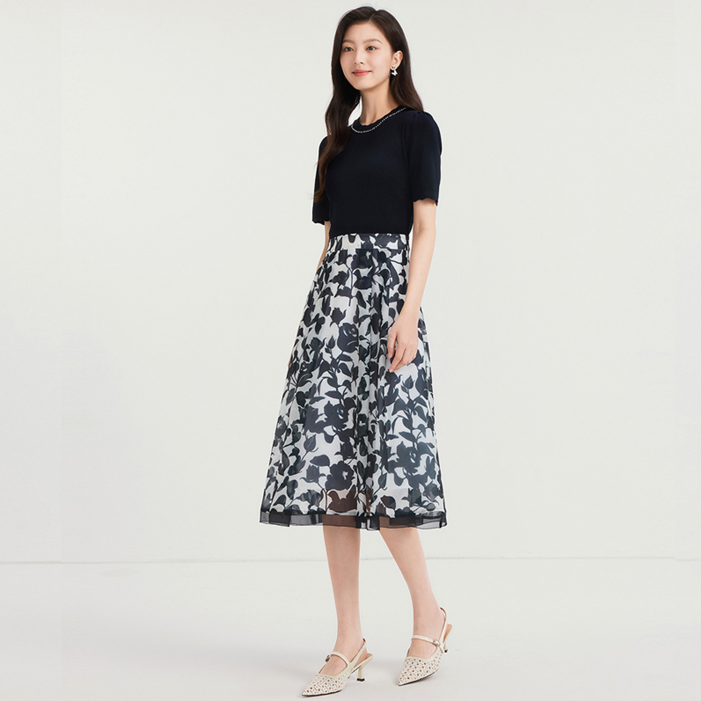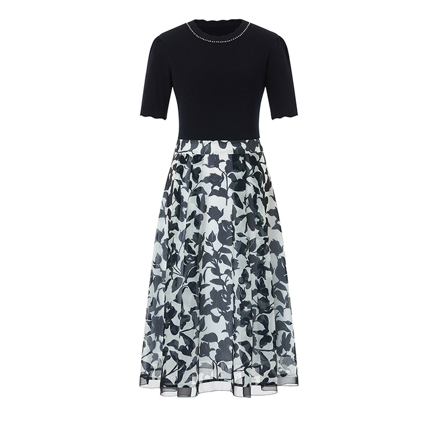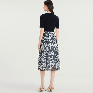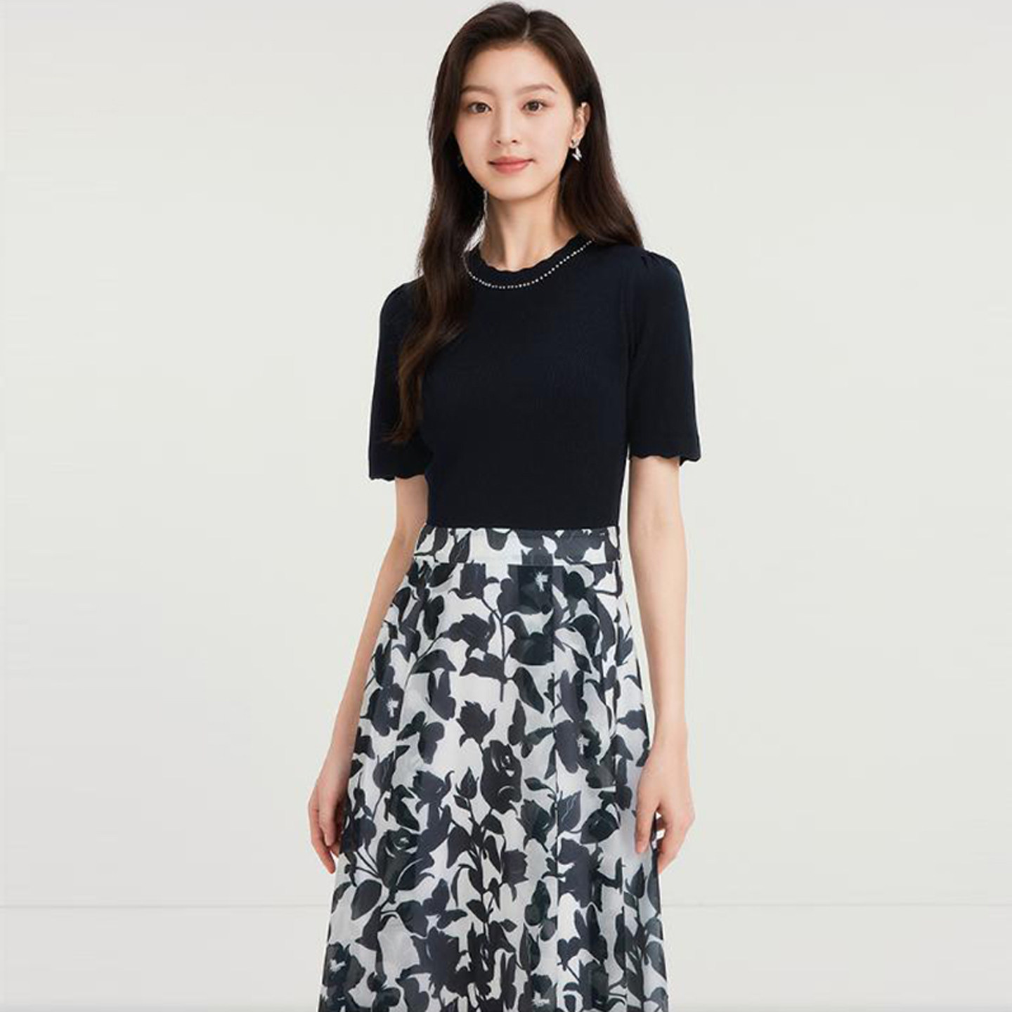 针织拼接印花连衣裙 珂莱商场同款 圆领短袖 新款 KF12324Q7 2025夏季