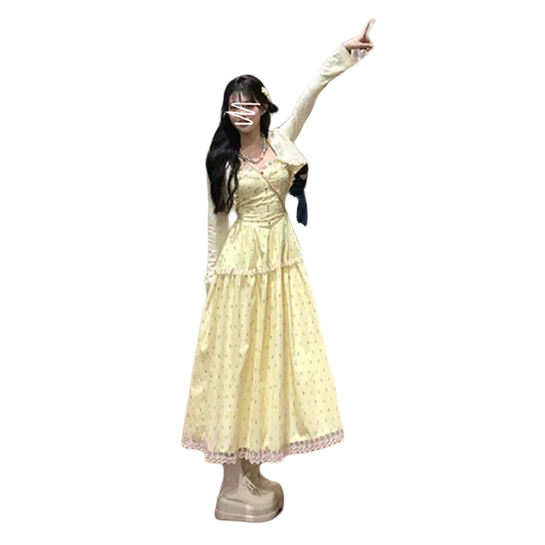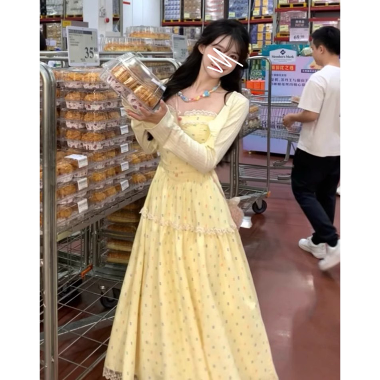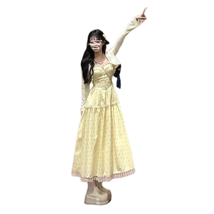 两件套装 防晒披肩开衫 温柔风糖果甜心蕾丝拼接吊带连衣裙女 法式