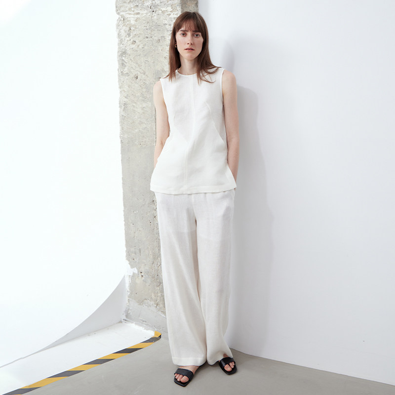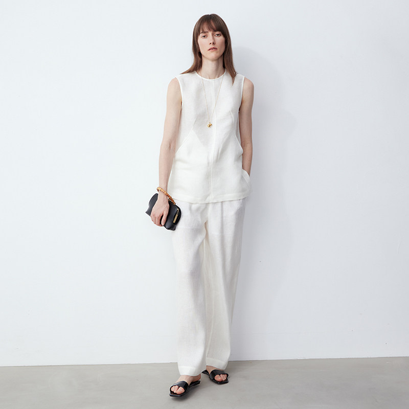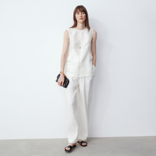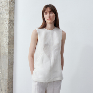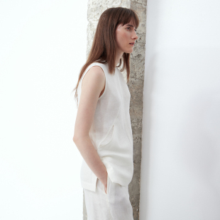 亚麻舒适抗皱插袋白色无袖 新品 背心简约百搭上衣 ROC25夏季 LIAC