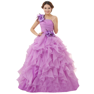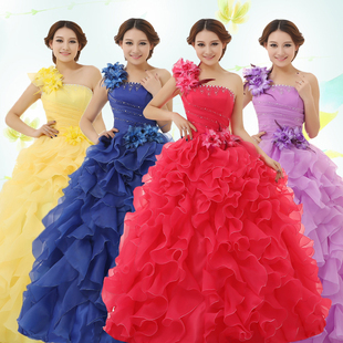 歌唱服 蓬蓬裙长款 时尚 影楼主题 单肩晚礼服 独唱舞台演出服装 新款
