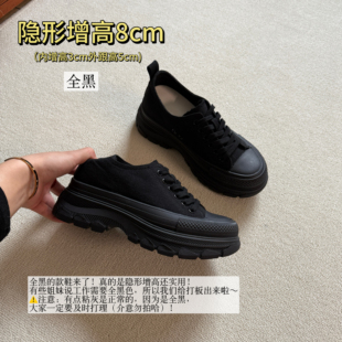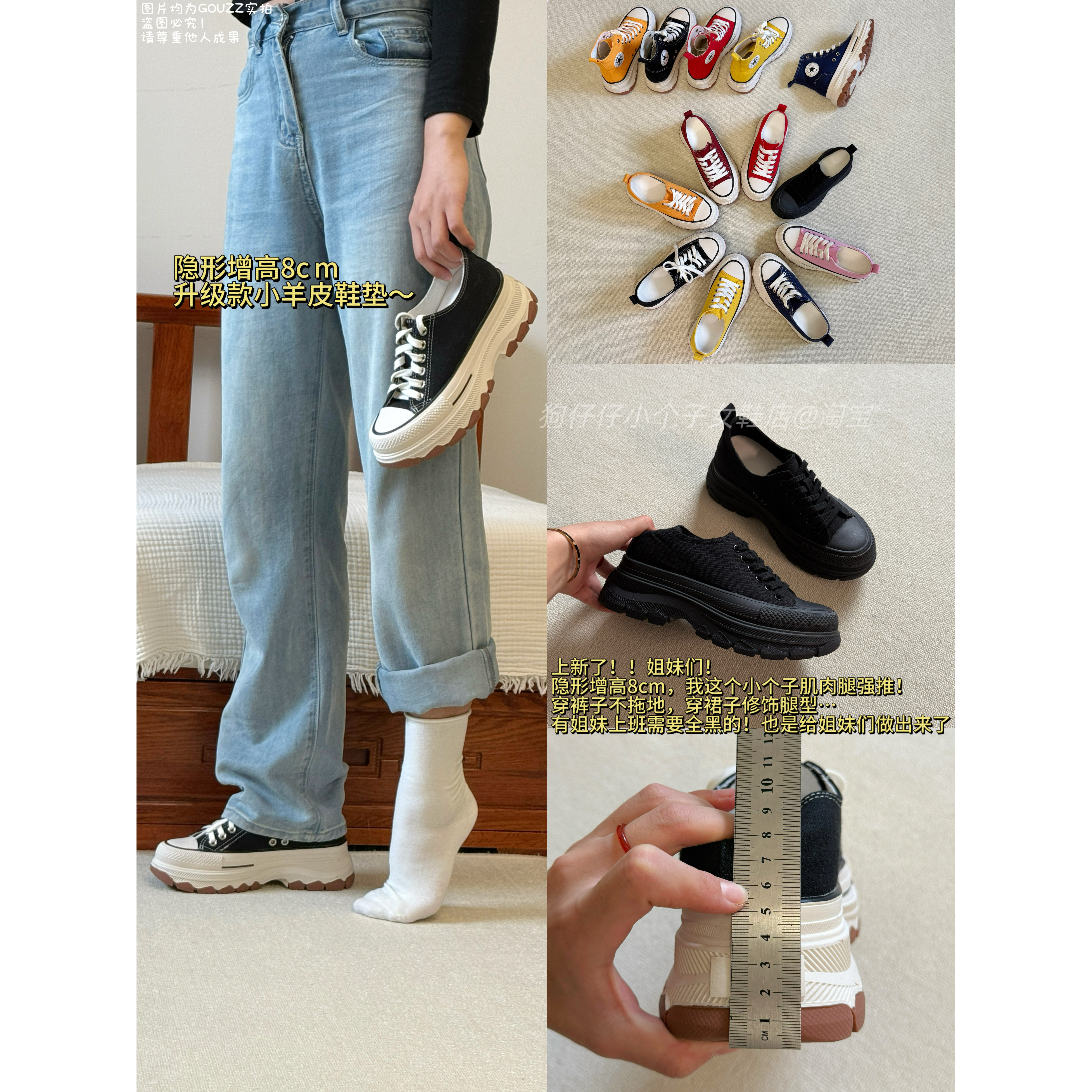 女鞋 狗仔仔 内增高休闲板鞋 隐形增高8厘米厚底帆布鞋 水果软糖