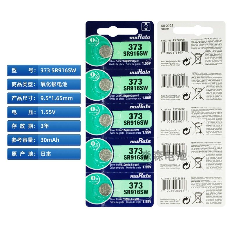 日本原装 进口muRata村田SR916SW手表电池石英表373氧化银纽扣电子