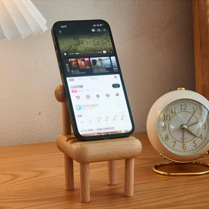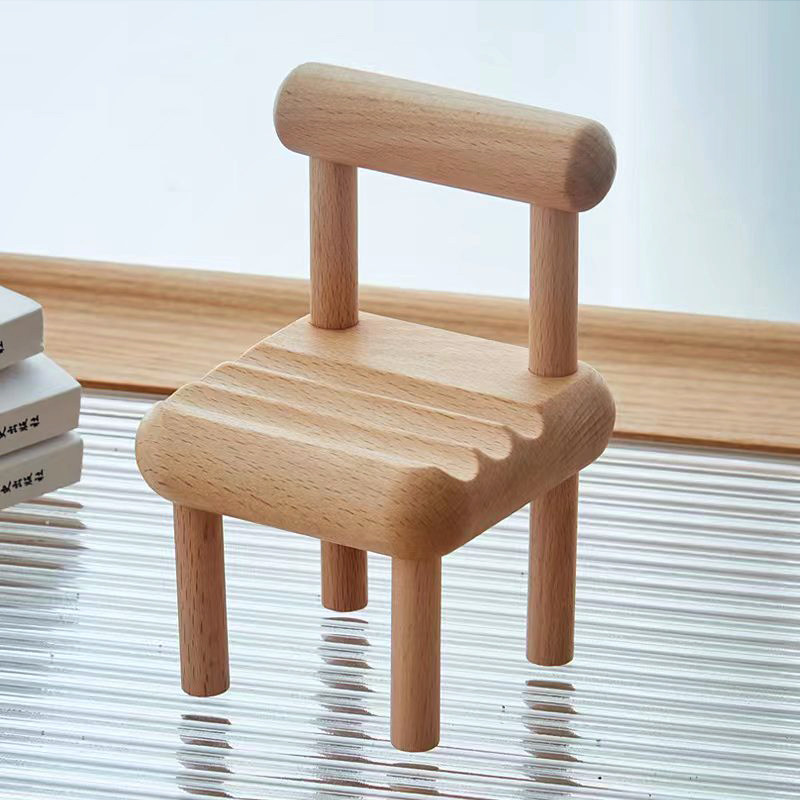 ins原木风迷你小凳子手机支架桌面可爱摆件置物架实木质手机支架