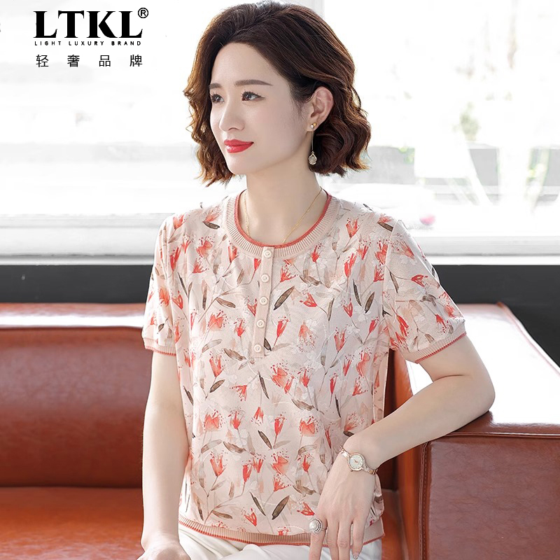 宽松冰丝T恤小衫 五十岁中老年人女洋气大码 上衣 气质短袖 妈妈夏装
