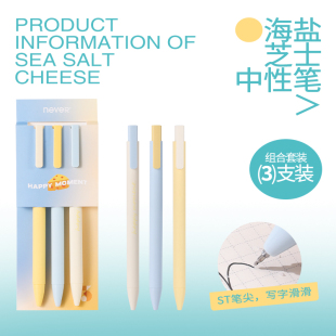 never下午茶笔海盐芝士按动中性笔3支装 刷题笔ST速干顺滑学生笔高颜值ins风
