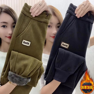 高腰束脚哈伦裤 女加绒加厚雪尼尔条绒卫裤 子 羊羔绒休闲裤 秋冬新款