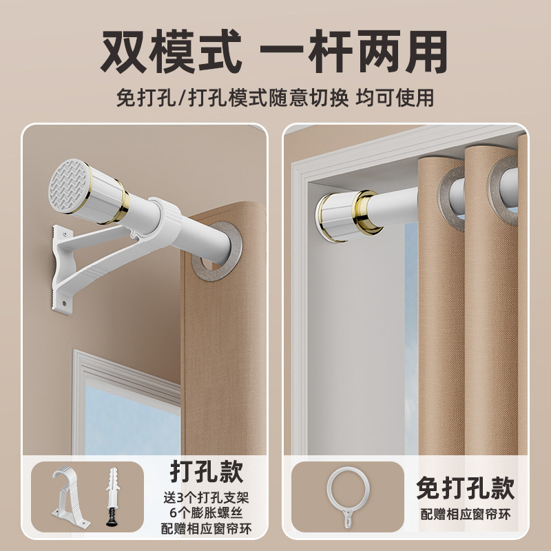 窗帘杆免打孔安装 窗帘轨道伸缩杆罗马杆一整套杆子可挂杆滑轨支架