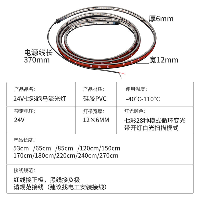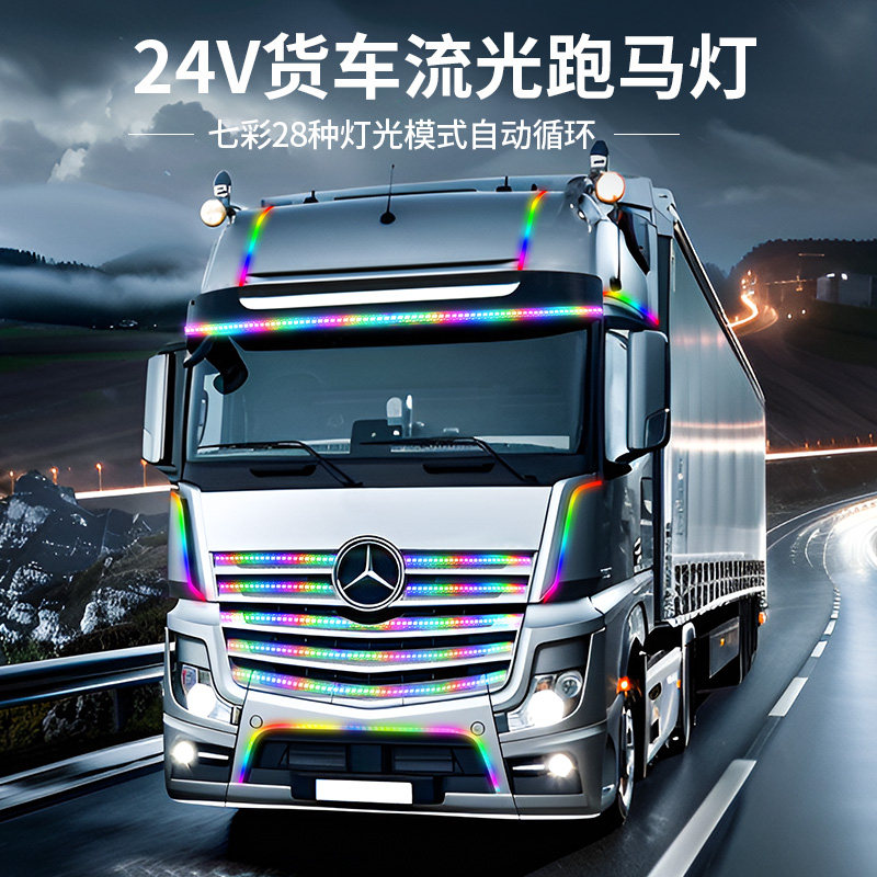 24V货车卡车改装 饰氛围灯条 led七彩跑马流光灯遮阳板霹雳游侠灯装