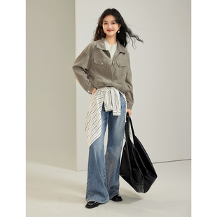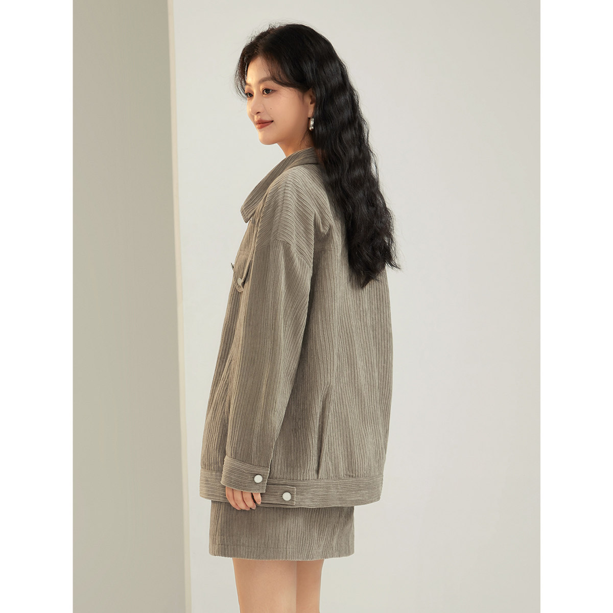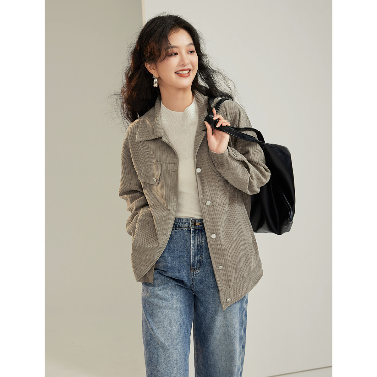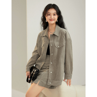 微胖MM梨形显瘦穿搭上衣 复古简约灯芯绒外套女春季 时然大码 女装