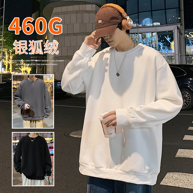 T恤衫 银狐绒卫衣男女情侣装 2025年百搭圆领宽松休闲纯色加绒长袖
