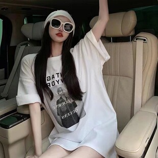 女装 宽松遮肚子半袖 休闲中长款 T恤夏季 体恤上衣200斤 短袖 胖mm大码