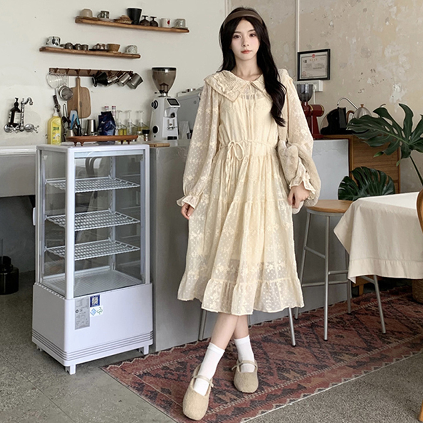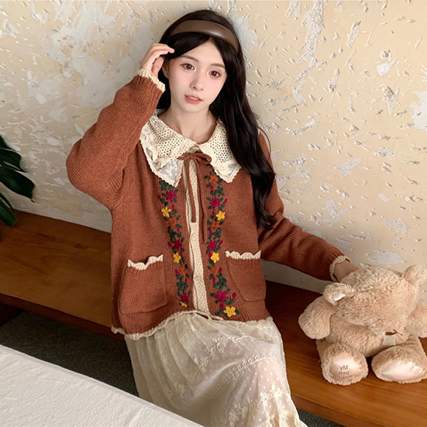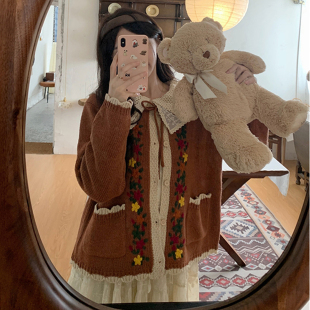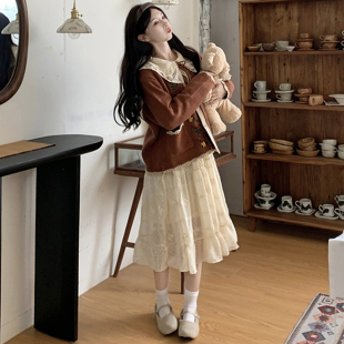 胖mm森系重工刺绣娃娃领毛衣 2025秋季 蕾丝宫延风连衣裙 女装 大码