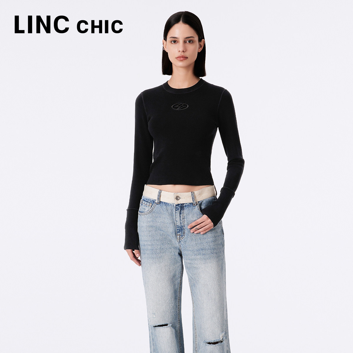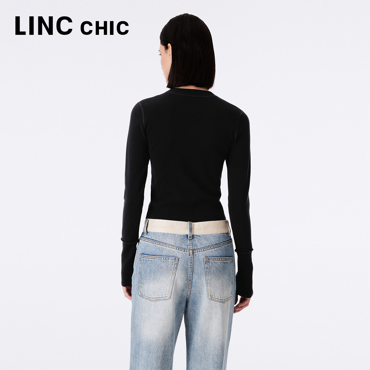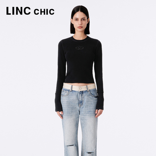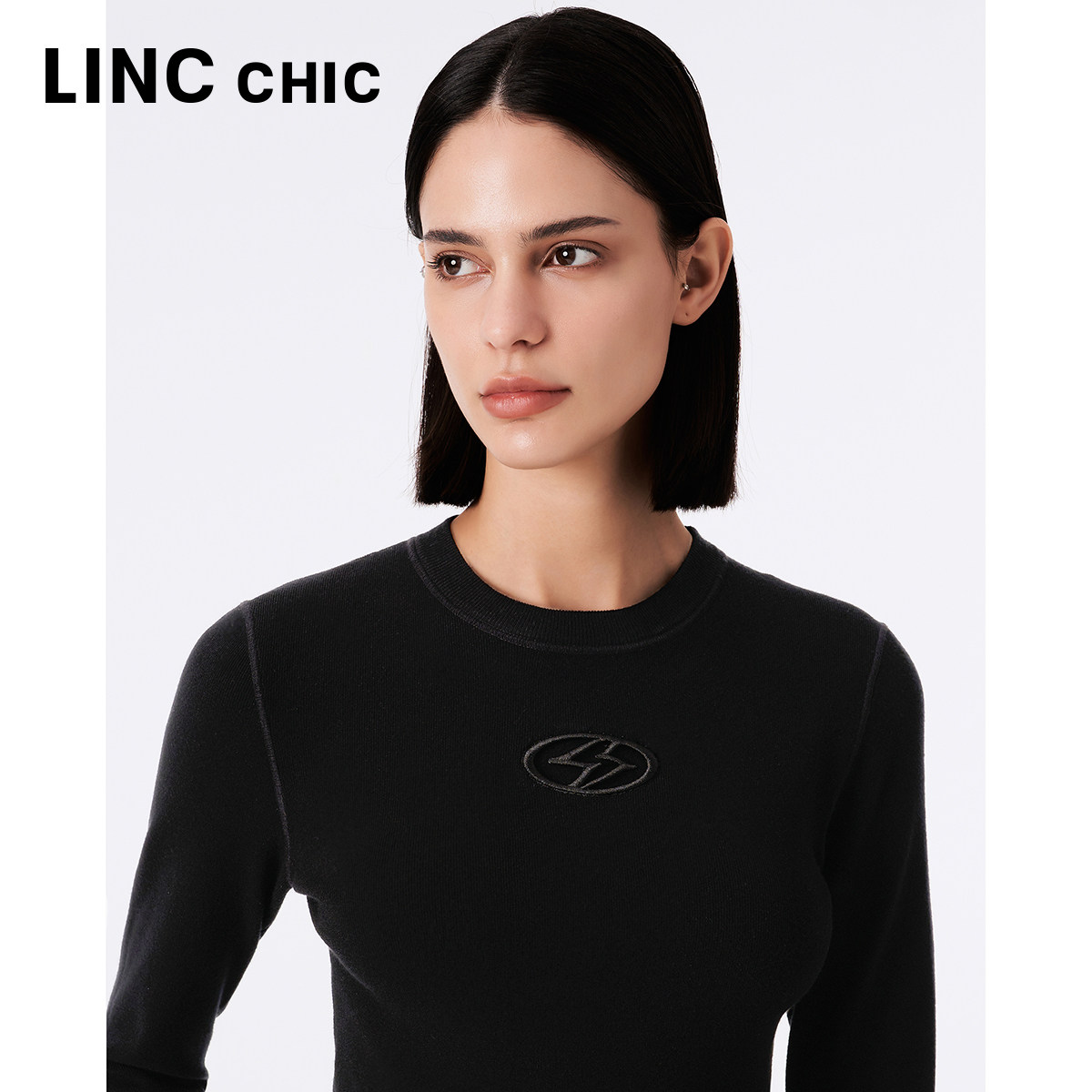 圆领上衣女S233SW401Y 修身 LINCCHIC金羽杰针织衫 女机能感打底衫
