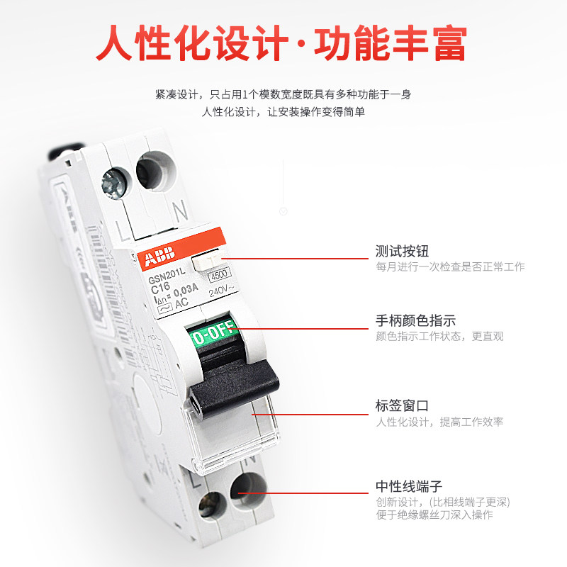 C16 C10 C20 C25 原装 A单相1P ABB小型漏电保护器断路器GSN201L