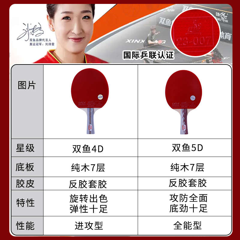 红双喜官方旗舰店 9星成人儿童训练球拍 乒乓球拍星级单只成品拍1