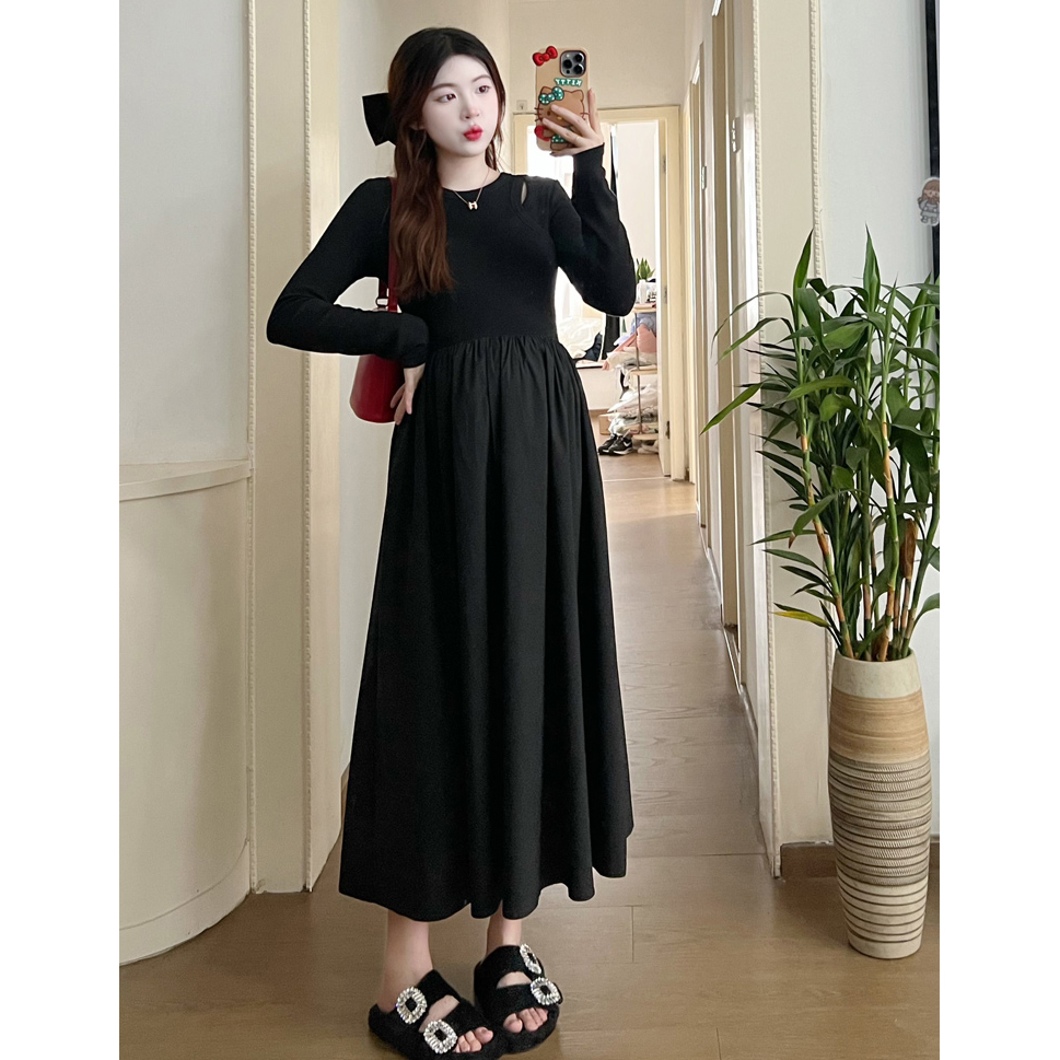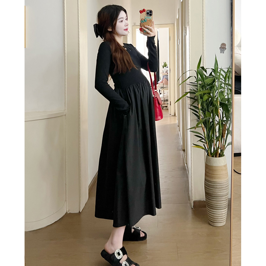 春秋冬打底长裙 2025新款 孕妇连衣裙时尚 辣妈黑色显瘦哺乳圆领长款