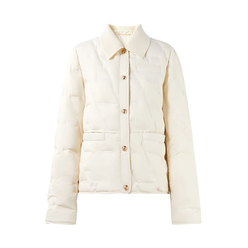 POPCHRIO欧可芮 90白鸭绒花苞羽绒服仿皮草拼接小个子夹克外套女