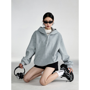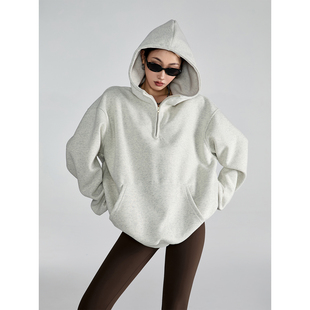 厚上衣内搭绒衫 2025年秋冬新款 半高领加绒卫衣女套头无帽宽松长袖