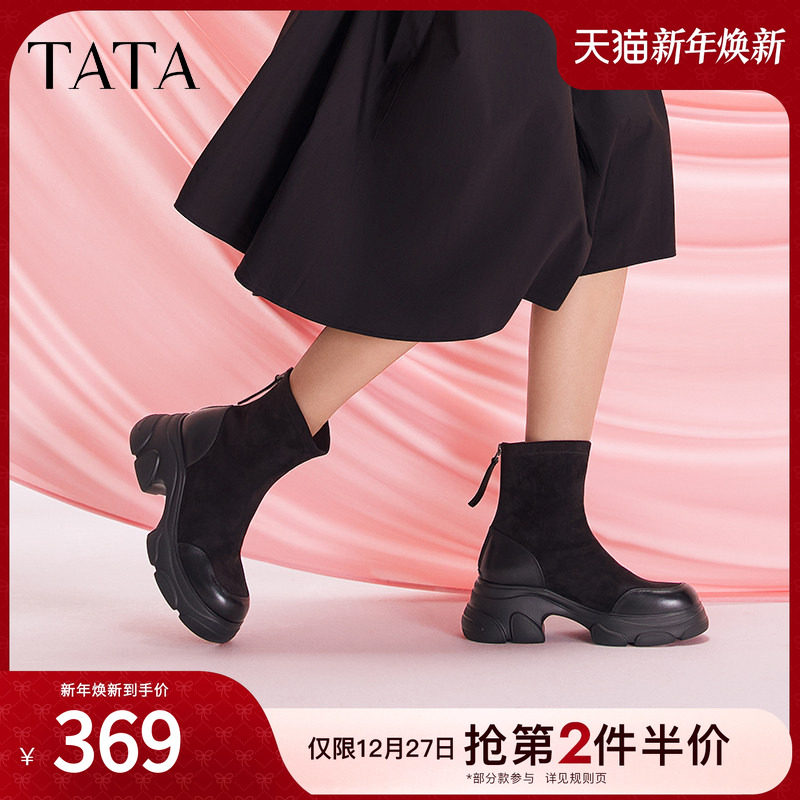 TATA他她喵爪靴2025冬季 靴弹力靴女靴瘦瘦靴加绒短靴CEG07DZ5 时装