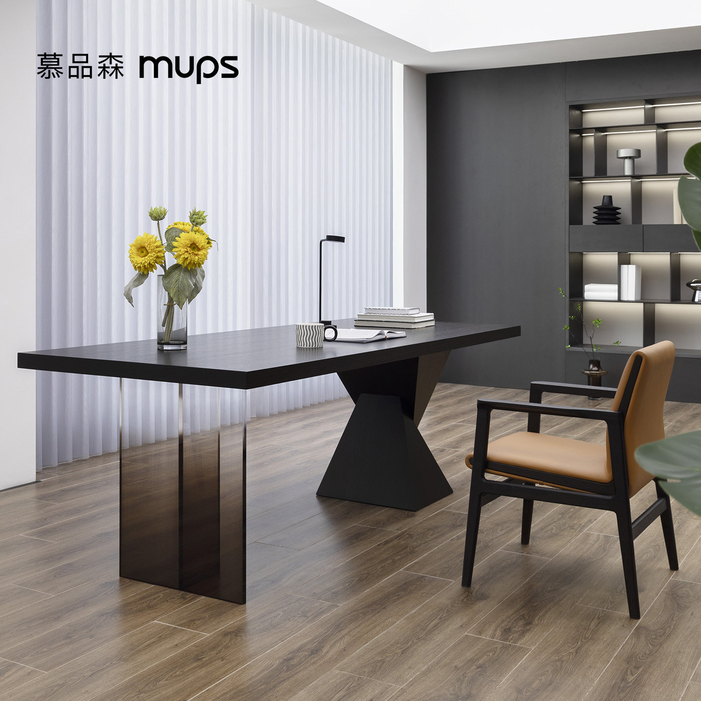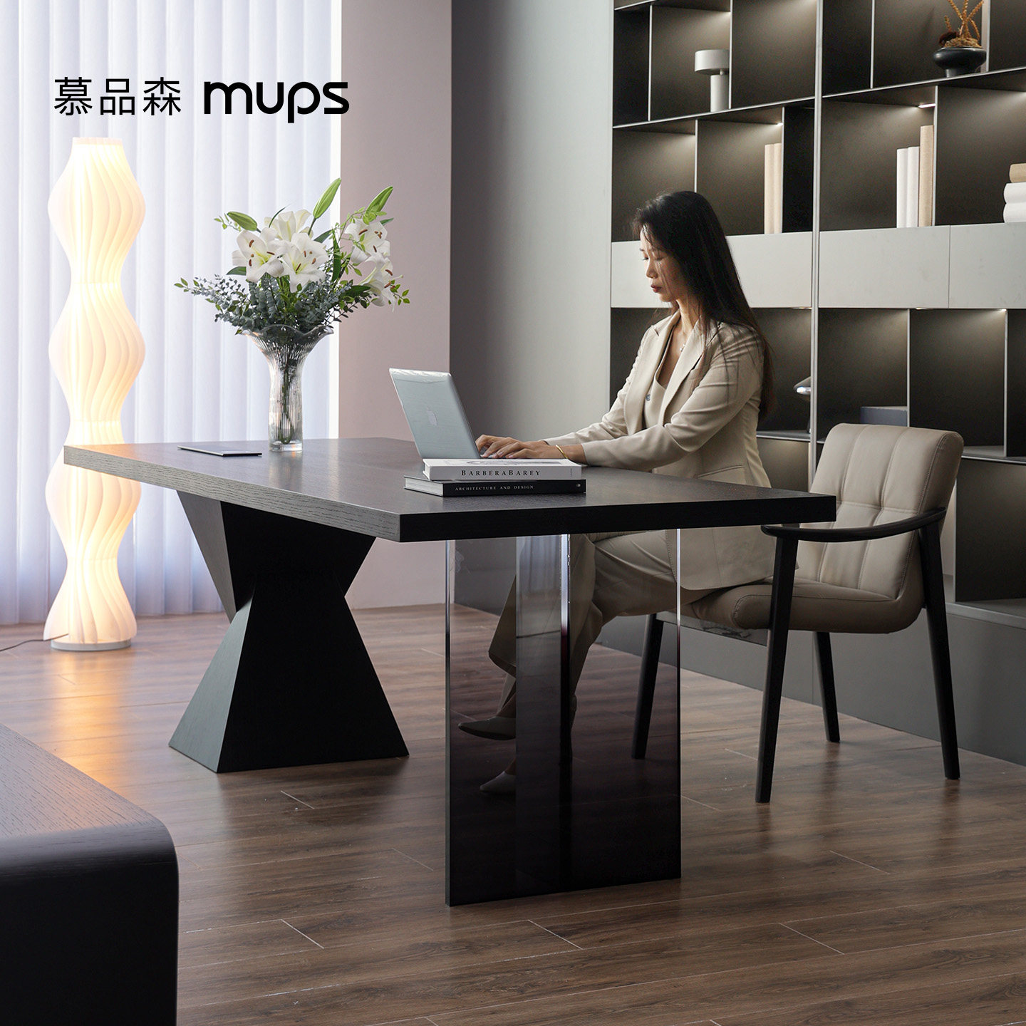 意式 极简书桌成人家用电脑桌客厅实木办公桌设计师大长工作台定制