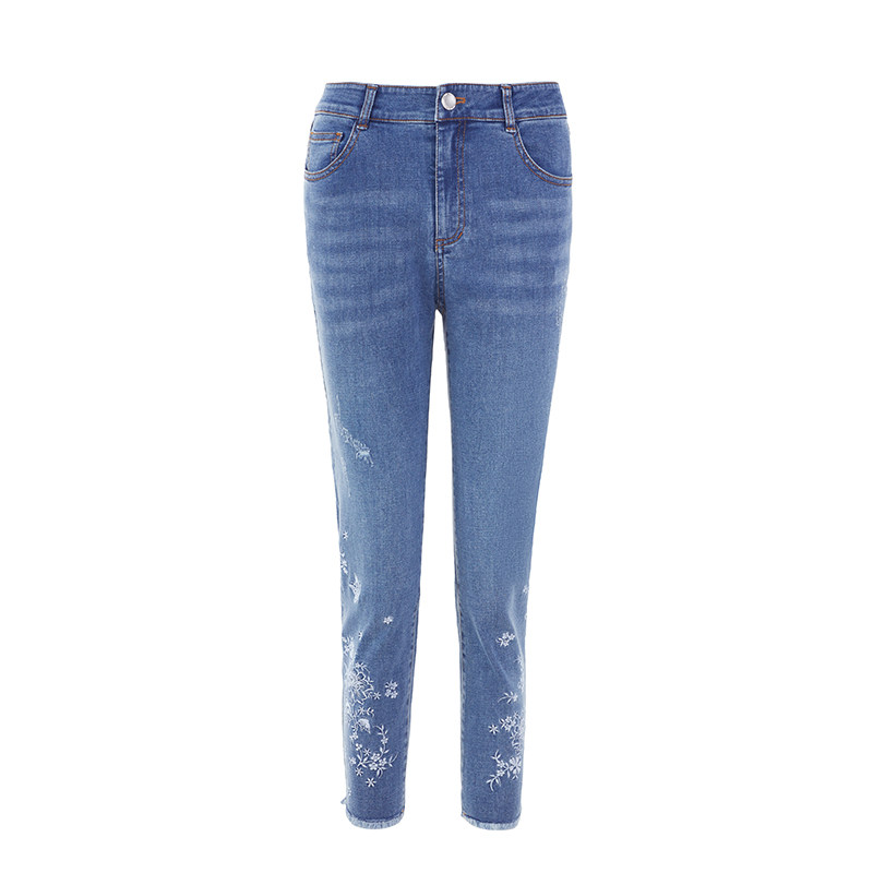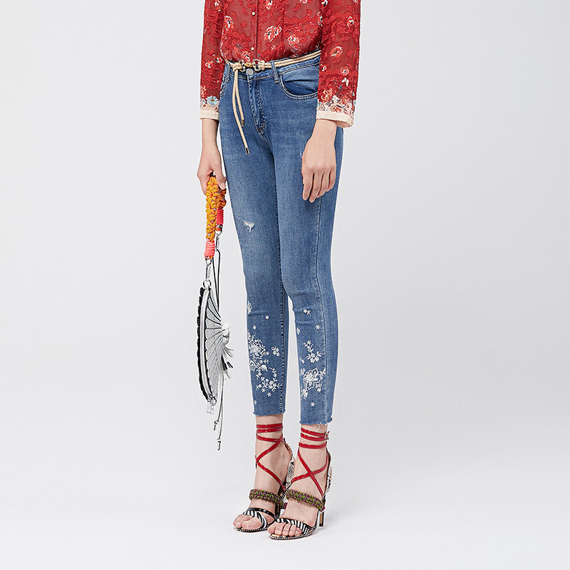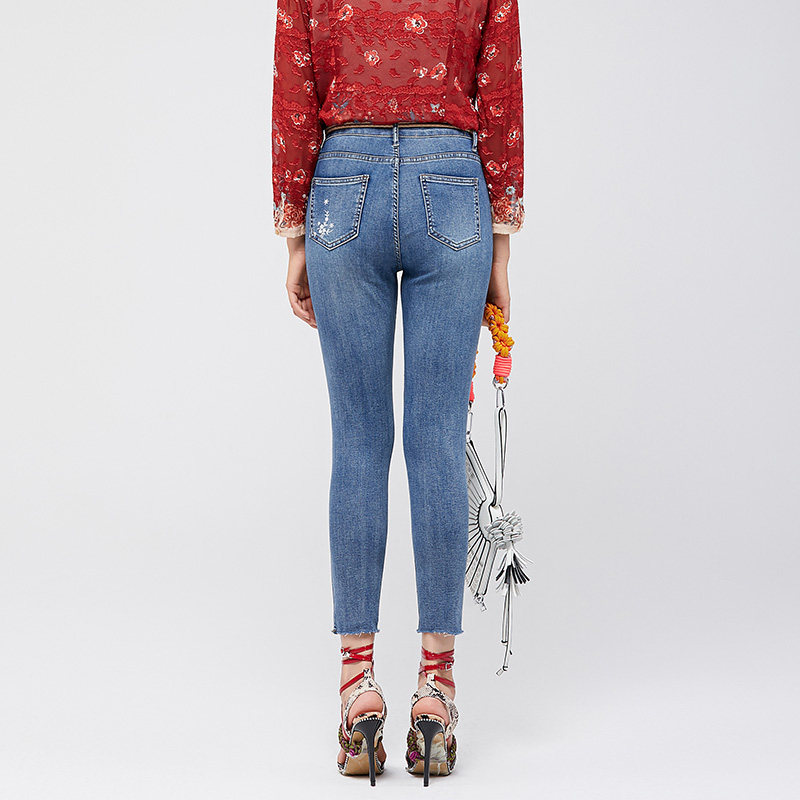 女弹力绣花紧身休闲小脚长裤 2024年新款 子FGGB6017 牛仔裤 渔牌女装