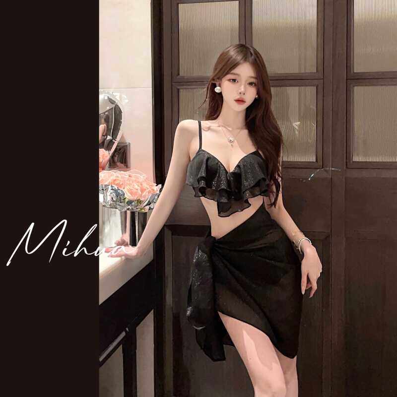 泳衣女温泉海边度假 防晒比基尼绝美大码 2025新款 分体聚拢性感罩衫