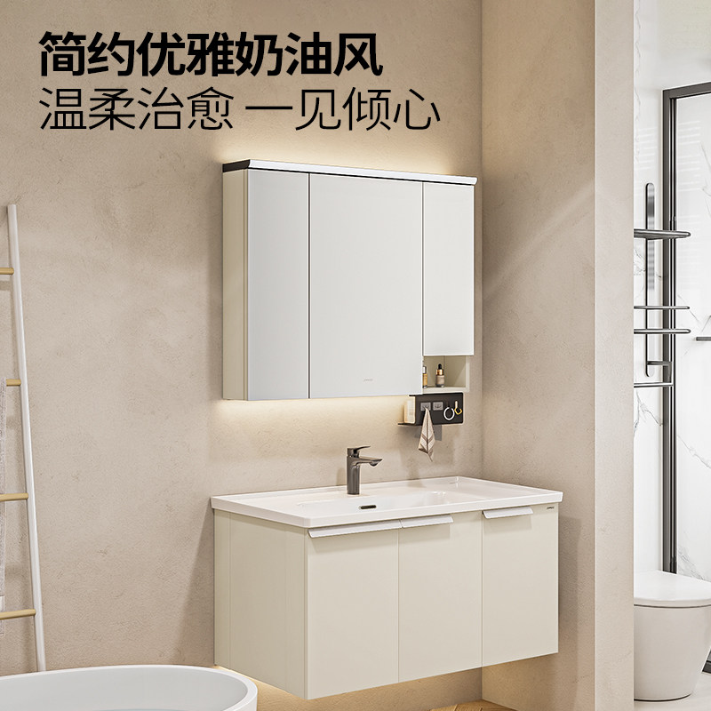 顾家家居轻奢浴室柜组合陶瓷一体盆洗手脸盆柜卫生间卫浴柜洗漱台