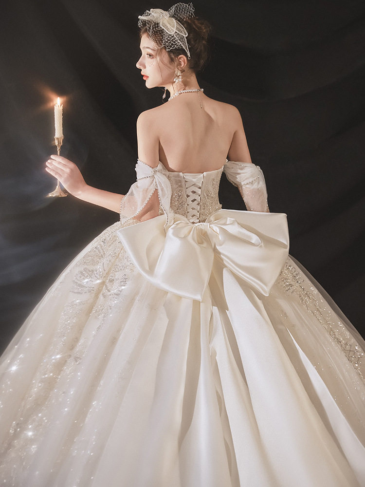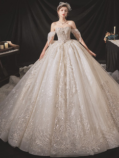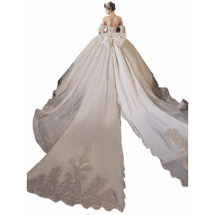 一字肩主婚纱2023春季 新娘气质大拖尾宫廷风复古重工质感婚纱 新款