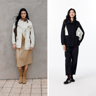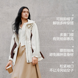 防护外套 拼色三防防风秋潮酷宽松连帽上衣户外 森马外套女中长款