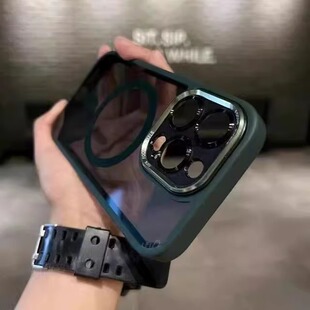 苹果手机壳钛灰色新款 镜头适用磁吸15promax金属14pro透明黑magsafe硅胶iphone16plus小众高级感13pm保护套男