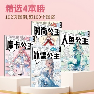 冰雪奇缘人鱼公主冰雪公主艾莎时尚 描画书自学描摹本临摹画册画画零基础教程书涂色线描画公主女生画画描红本