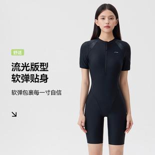 泡温泉泳装 李宁游泳衣女2025新款 专业游泳馆专用连体平角保守大码