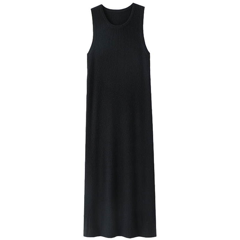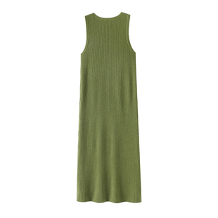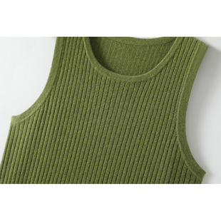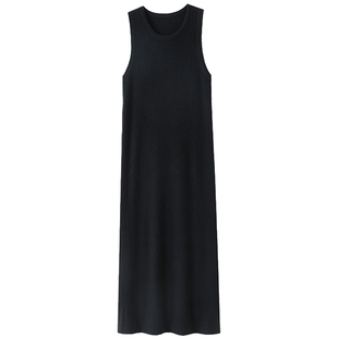 展现柔美高智 针织连衣裙子坑条编织 100%纯山羊绒背心圆领长款