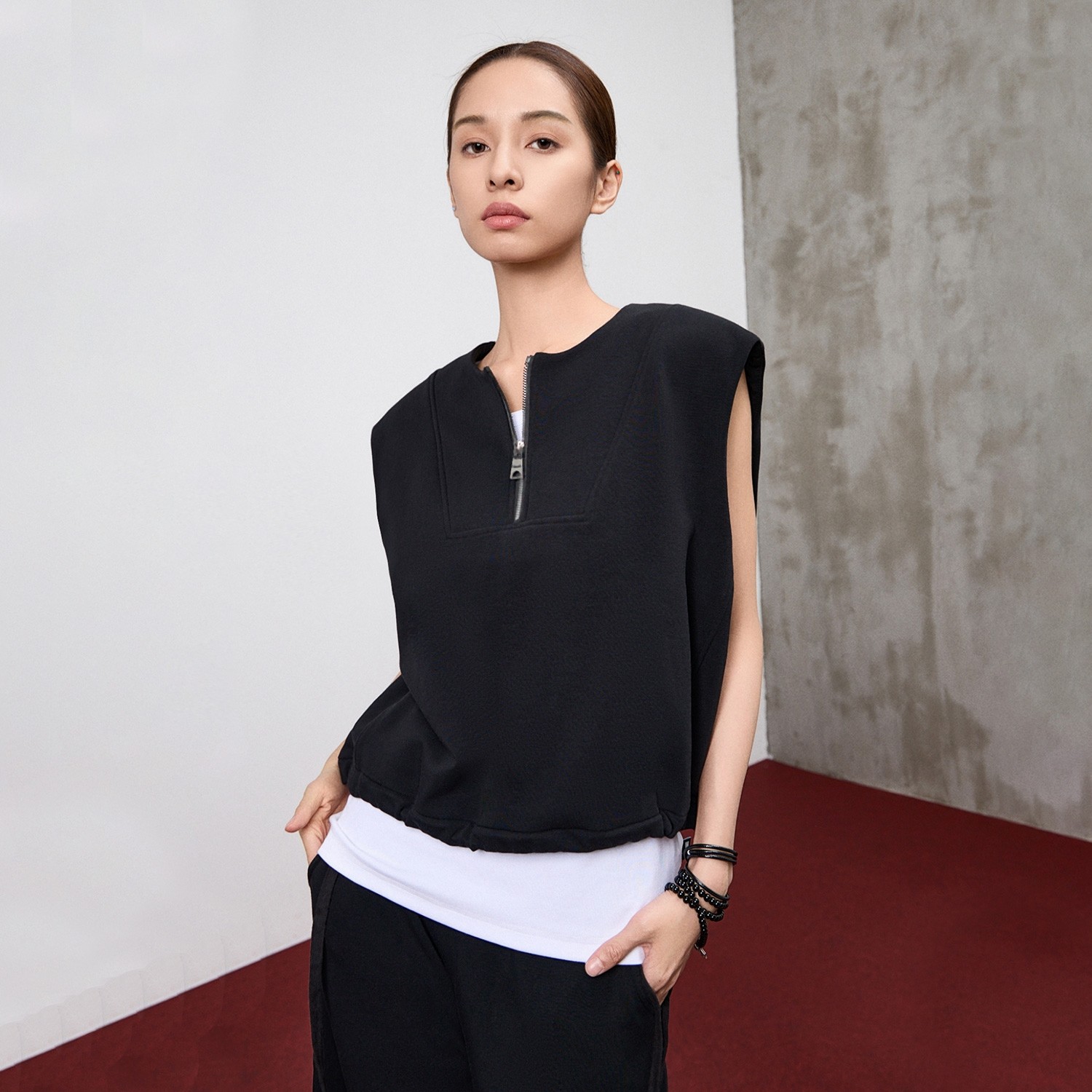 新款 odbo 气质运动背心女春季 时尚 外搭宽松显瘦马夹纯棉 欧迪比欧