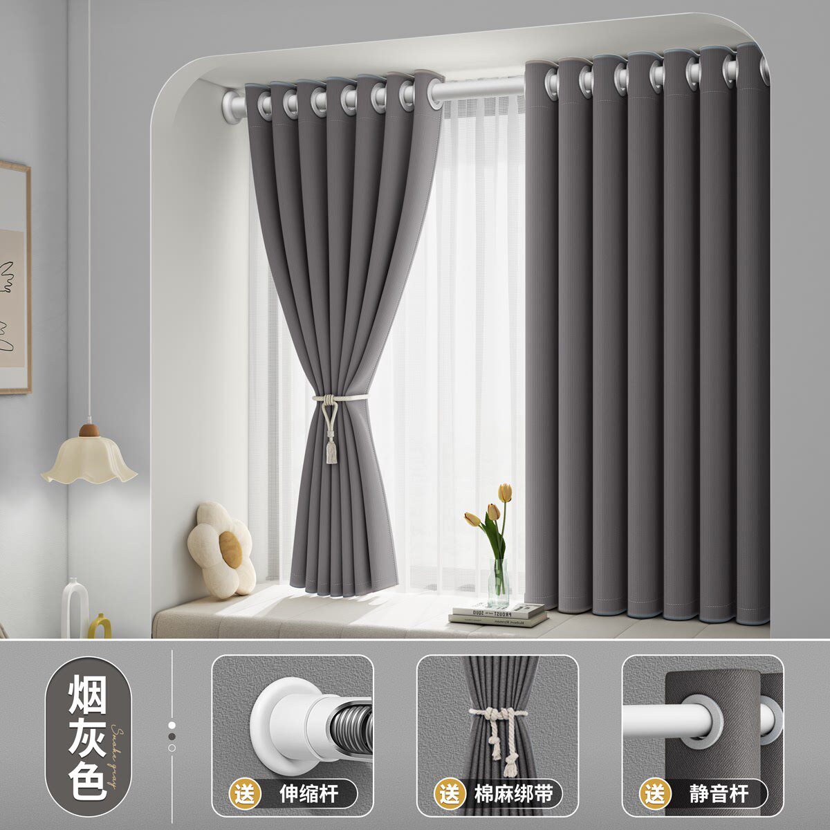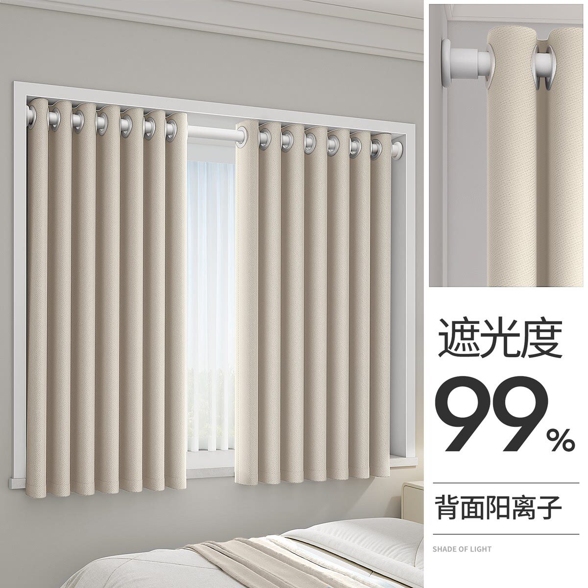 8ksg遮光布免打孔安装 伸缩杆一整套遮阳卧室窗帘全小 飘窗2024新款