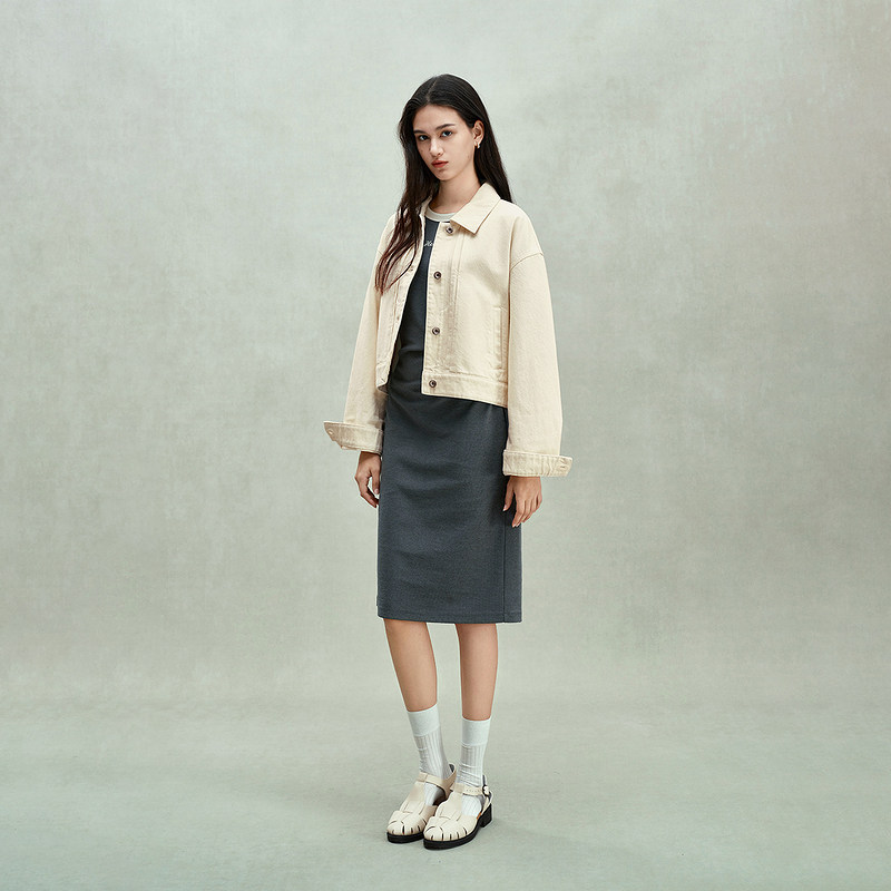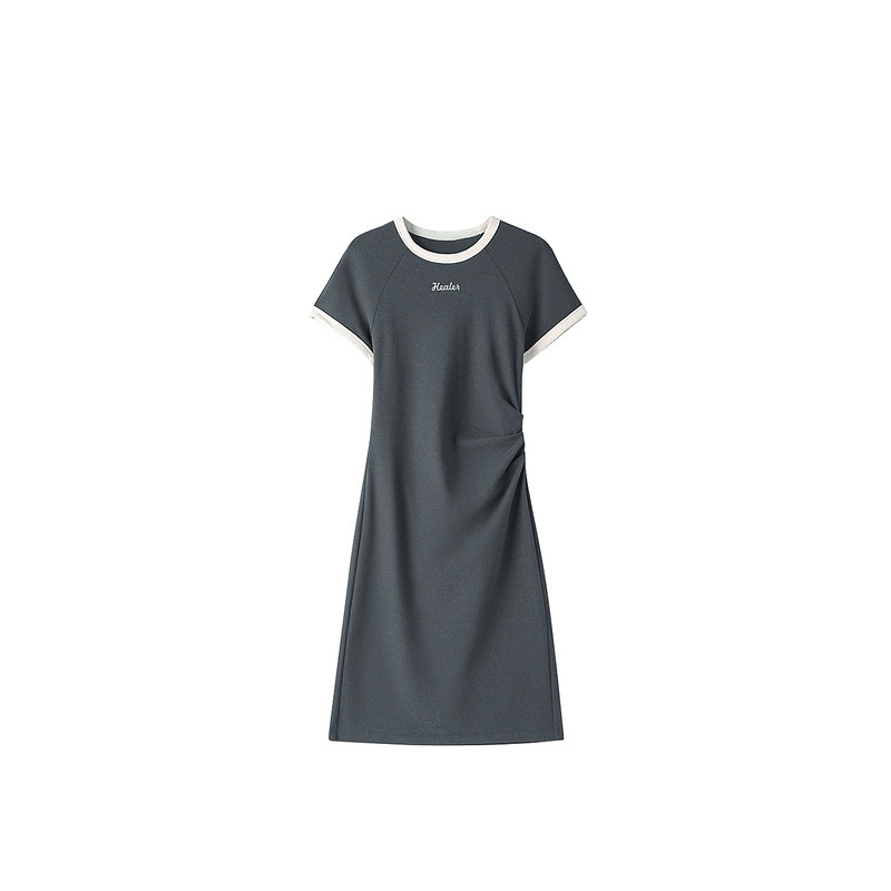 新品 ochirly欧时力 抽褶插肩连衣裙女刺绣撞色收腰休闲2025春季