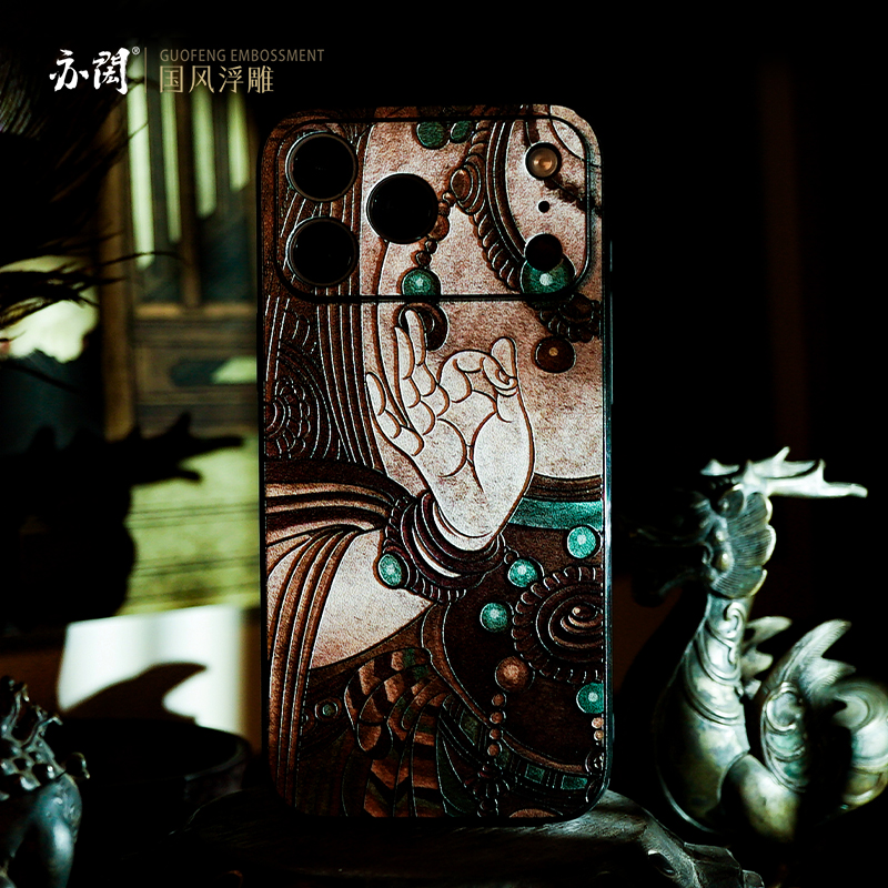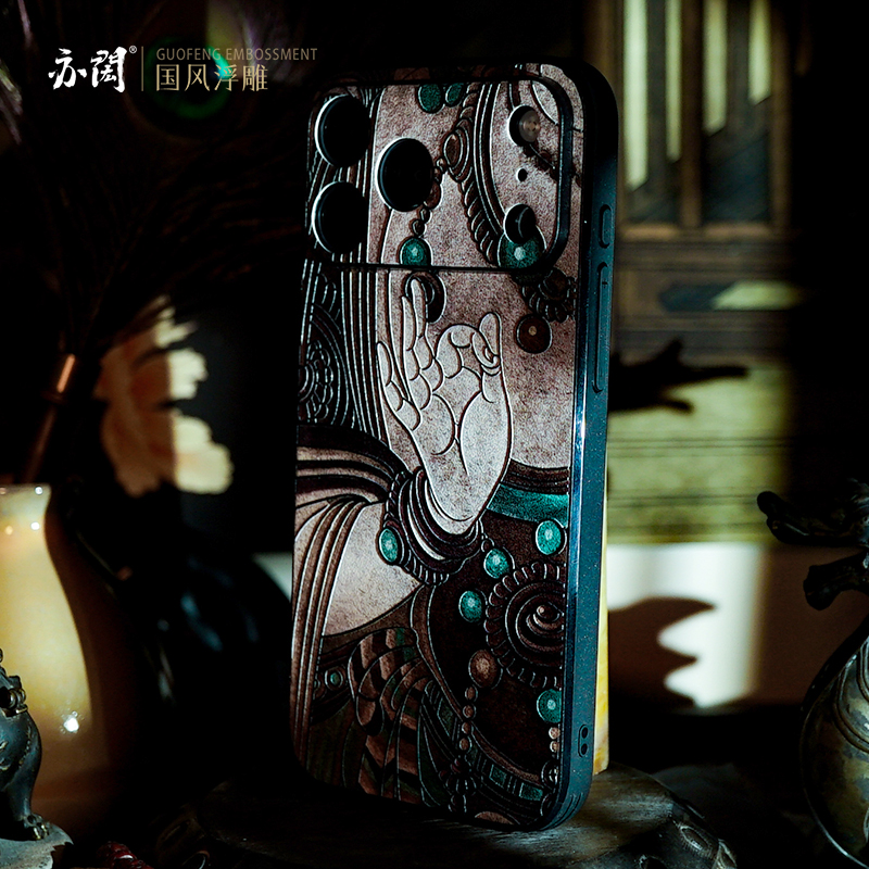 佛系 iPhone16浮雕iphone15promax手机壳国风苹果14高级感13pro经典 古造x敦煌 佛手壁画风适用iPhone17新款